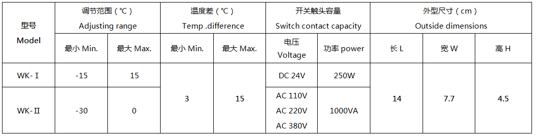 WK series temperature controller is a pressure responsed temperature controller .The products are widely used for the commercial refrigerator ,refrigerated warehouse ,refrigerated cabinet , icecream machines etc.